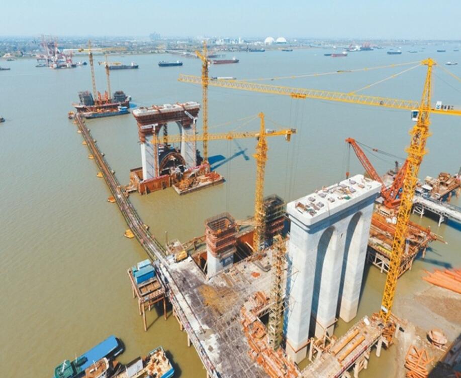 蕪湖長江公鐵大橋是商合杭鐵路的控制性工程,是世界上最大跨度的公鐵兩用高低矮塔鋼箱桁組合式斜拉橋,主跨跨度588米,3號塔柱高130.5米。該橋首次采用深水裸巖設置式鋼沉井基礎,且首次采用單個錨點最大索力(16000KN)的耐久型平行鋼絲斜拉索兩項國內領先技術。該項目的混凝土外加劑采用了四川鐵科新型建材有限公司生產的TK-PCA